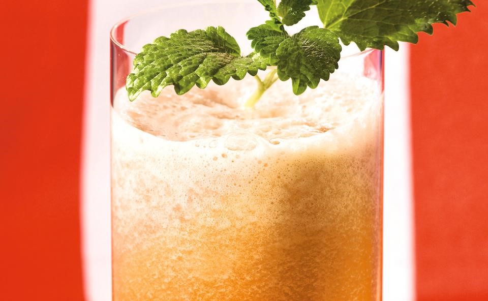 - Tee abgießen und auskühlen lassen. Melonen in 2 cm große Würfel schneiden und mit dem Tee aufmixen. Mit Melisseblättchen dekorieren.