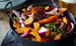 Kürbis-Erdäpfelgröstl mit Rindsfilet und Rosmarin