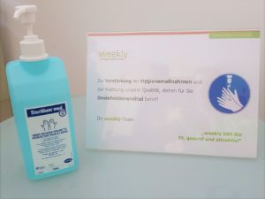 - Wartebereich – Händedesinfektionsmittel für Ihre Verwendung (Selbst-)Schutzmaßnahmen